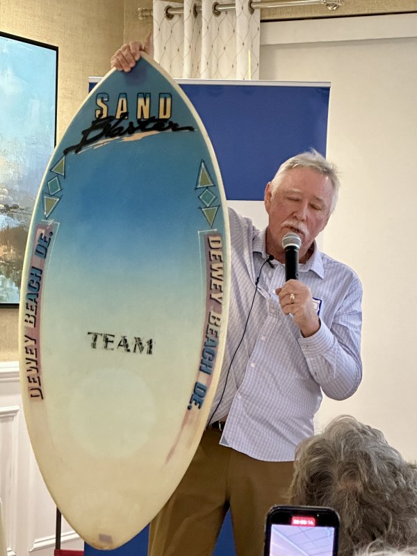 Former Mayor Diane Hanson brought attendees back to the present by sharing how Dewey Beach transitioned from a dirty bar town to a family-friendly beach resort. The first step was getting a town trash-removal plan that included valet service so trash cans were not left out on the street. An important aspect was requiring this trash service for all rentals. Then Dewey went to the dogs with a variety of dog events for greyhounds, golden retrievers, doodles, and even chihuahua races, which all helped bring families to town. The Dewey Business Partnership started family-friendly events such as the Easter Bunny visits, Halloween activities for kids, Santa at Christmas and the Dewey Dunk on New Year's Day. These events have thrived for 14 years and have helped immensely to create the family-friendly town Dewey is now known as.