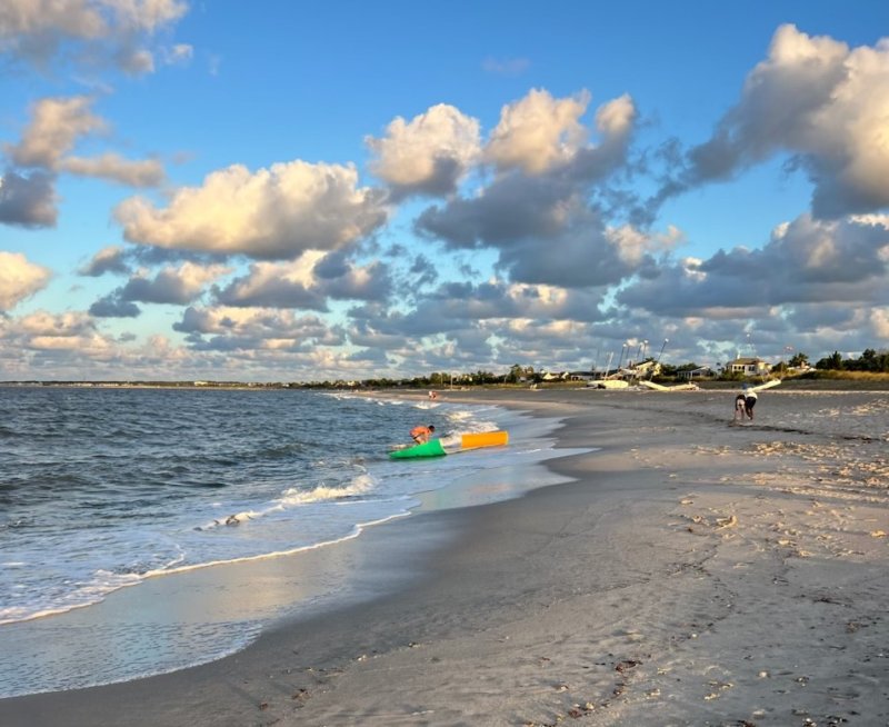 Golden light and rolling clouds frame a quiet evening on Lewes Beach in Tim Willard’s photo.