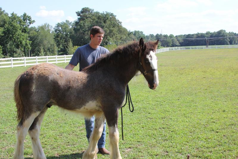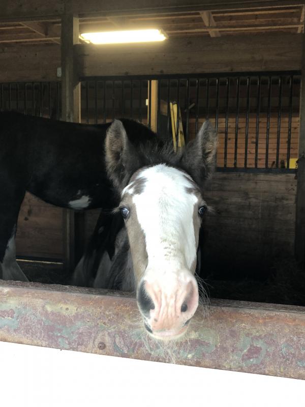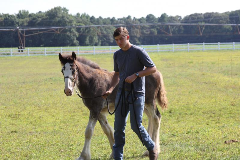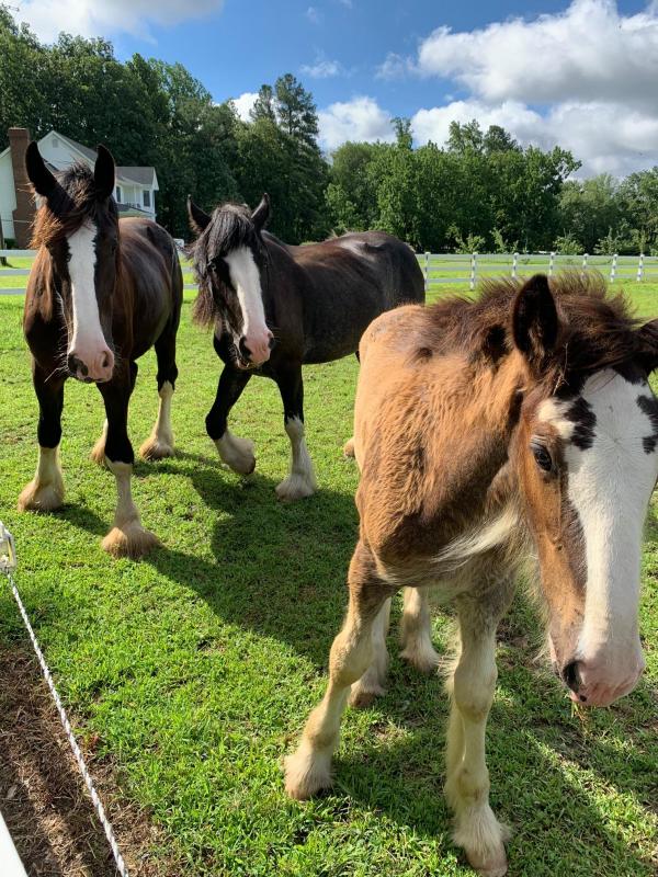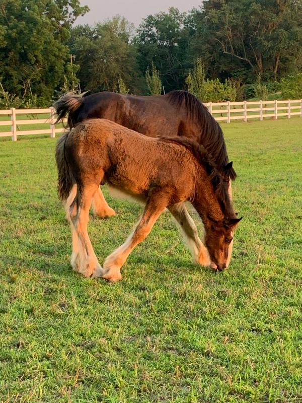 Asher spends his time at the Carpenters’ 500-acre Milton farm with his mother, who will nurse him until he’s 6 months old. He also has a stablemate named Bo, a registered Clydesdale gelding, who at 3 1/2 years old is also a youngster. Tammy said she plans on registering Asher in June 2022, and he’ll end up with a fancy name like his mother’s, Battle River Hightower’s Peggy, or Bo’s, Boulder Bluff Bodacious. Both of them have prefixes indicating the farm where they were born, she said.