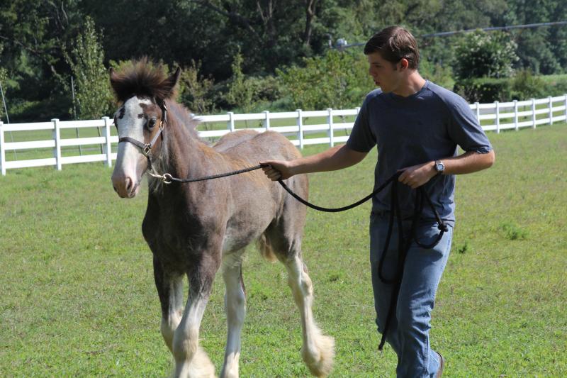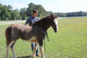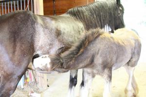 Born March 25, Asher came into the world at 100 pounds with all the love and attention he needed from his mother, Peggy – a black Clydesdale owned by Tammy Carpenter and her family.