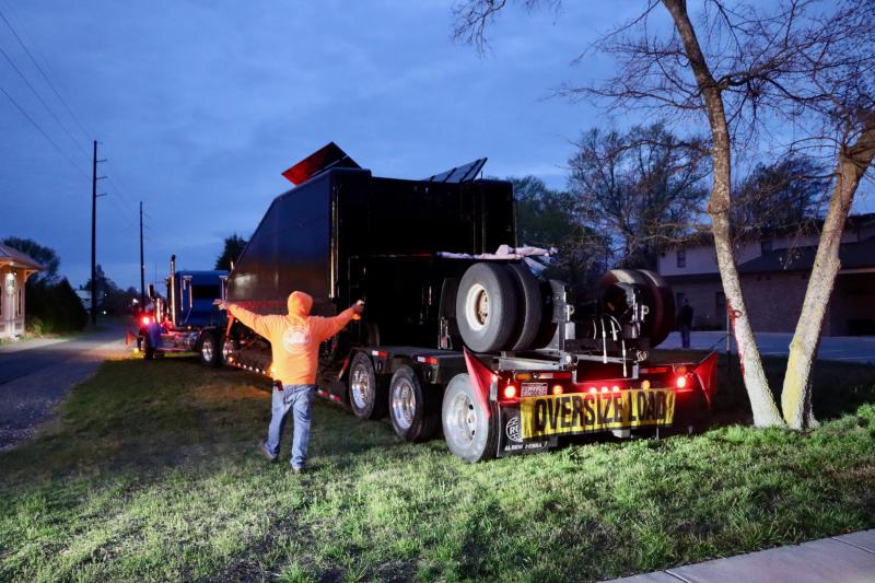 The 40-ton tender arrived before dawn on a flatbed truck from Pennsylvania.