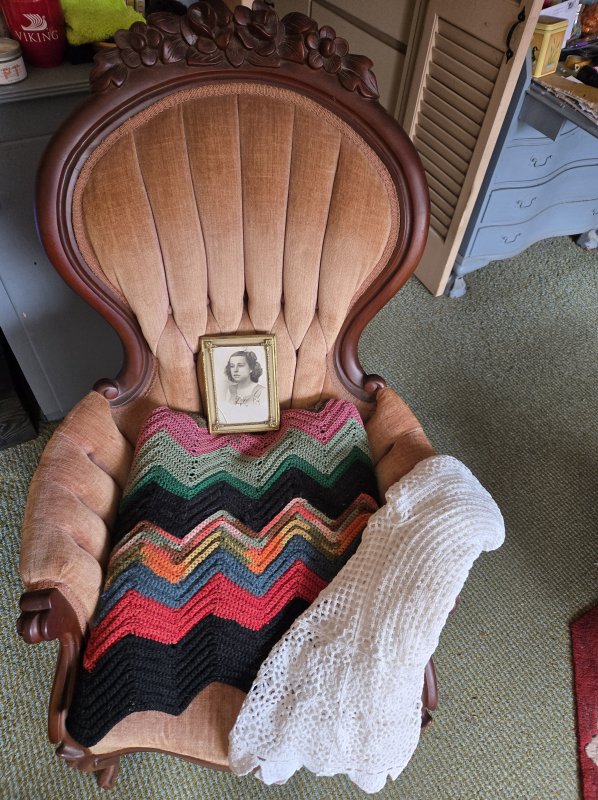 I finally heard of it in interior decorating terms, but that's only part of the story. Even young women are crocheting, knitting, quilting and tatting to relax. My pink house in Milton definitely has its grandmotherly overtones, as I inherited it from my mother. We certainly had our arguments about style, mostly fashion choices, but her grandmotherly presence is still here.