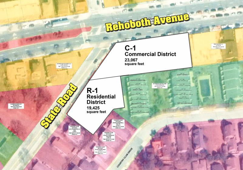 The proposed rezoning of a residential portion of 330 Rehoboth Ave. has been on the books since before COVID. The lot is about 42,500 square feet, of which about 23,000 square feet along Rehoboth Avenue is zoned C-1 commercial and about 19,500 square feet along State Road is R-1 residential. The developer, 330 Hospitality, has requested the rezoning of the residential portion so the property as a whole can be redeveloped.