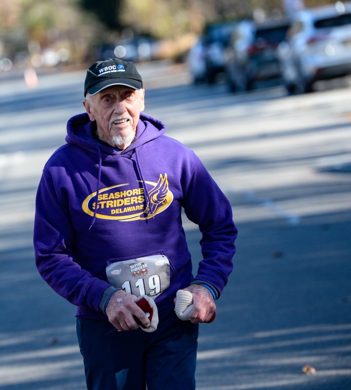 Pumpkin Pie 5K - The Pumpkin Pie 5K is always a great race the Saturday after Thanksgiving. It’s run in Rehoboth with Grove Park as a staging area. Joey Hawley of Irwin, Pa., was the overall race winner in 16:33. Joey is married to Sara Lisehora, whose mom is Diane Lisehora Lins, who is the daughter of Marion Lisehora. Sara is one of six grandchildren of Marion, a super senior athlete and former diving horse rider on Atlantic City’s Steel Pier. Joey’s time was a personal record after being sick for two weeks. Magic Jack Noel, 87, was last in the field of 360 runners, clocking 1:07:44. Jamie Wollard, 87, placed 352nd with a time of 1:01.23.