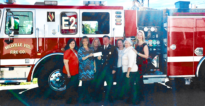 County Bank representatives presented a donation check for $500 to Millville Volunteer Fire Company. Shown are (l-r) Eileen Loftus; Brenda Richards; Sherri Damron of County Bank’s Millville branch; Clarke Droney, president of Millville Volunteer Fire Co.; Cathy Martin, Mary Lou Carozza and Zita Pennypacker, all also from County Bank.