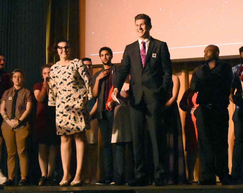 A packed house watched news segments and film trailers, and listened to original works by creative writing students. A cocktail hour preceded the event, as patrons wandered through the theatre checking out the outstanding work of amateur student photographers and graphic artists.