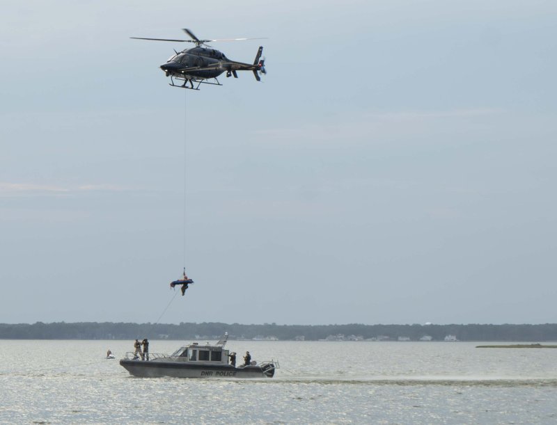 The Delaware Air Rescue Team joined forces with several agencies to execute a complex water rescue demonstration in Dewey Beach Sept. 24, as part of the Delaware Volunteer Firefighters Association Conference.