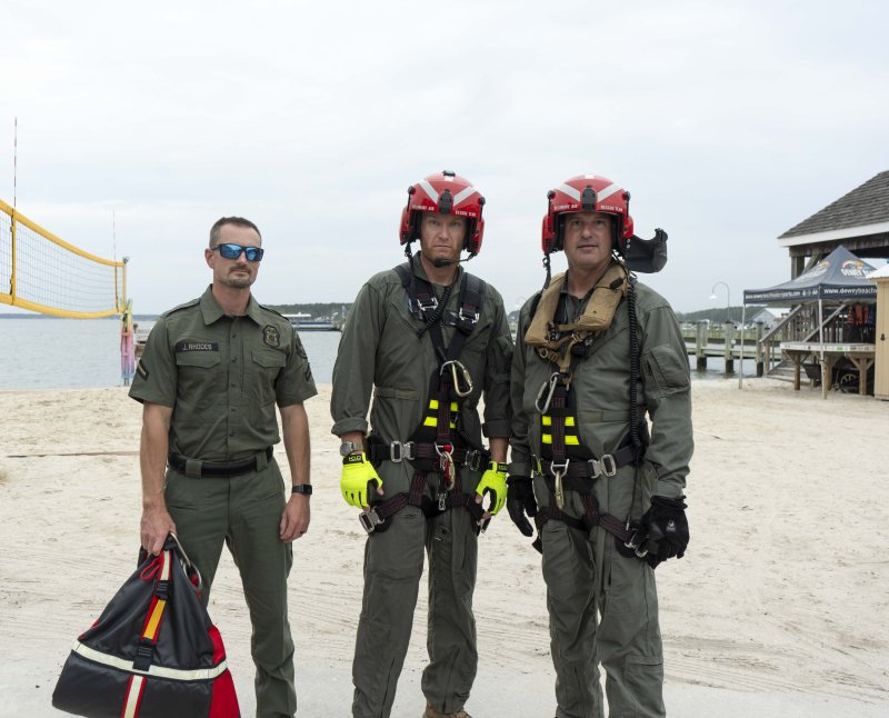 Once that individual was secured inside the aircraft, Gause and the non-ambulatory victim were lifted from the vessel together in the Cascade Bag in a second hoist. Instead of bringing them fully inside the aircraft, the helicopter hover-taxied with the two individuals secured externally. They were then flown directly to the shoreline, where emergency medical personnel and an awaiting ambulance at Delaware Seashore State Park received them.