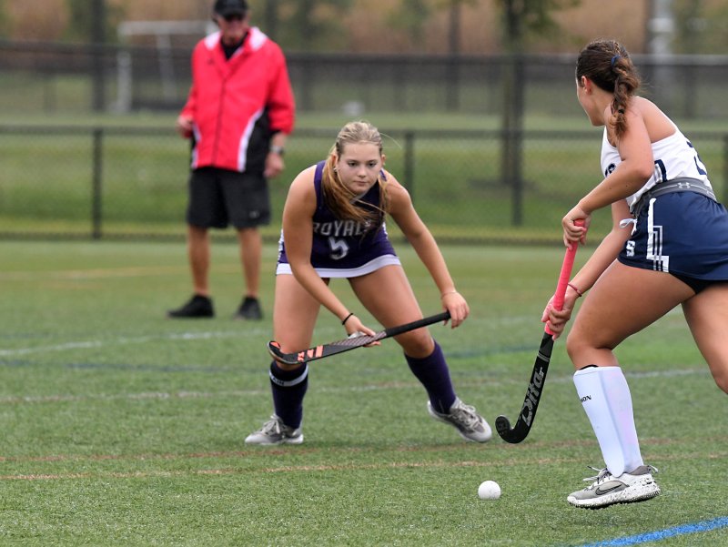 Delmarva Christian field hockey’s eighth-grade goalie Carsyn Riddle faced 40 shots and stopped an impressive 23, as Sts. Peter & Paul shutout the Royals 17-0 Sept. 17 at the DE Turf Sports complex in Frederica.