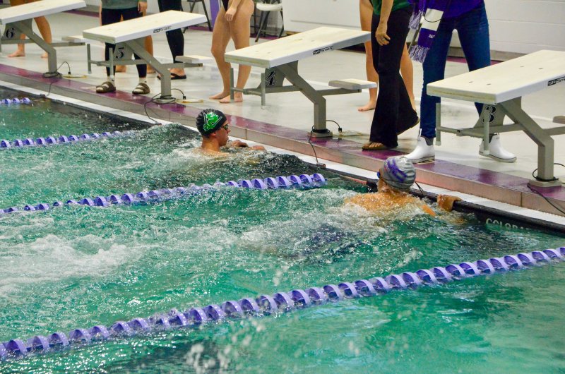 Diving over to the girls, they got a taste of each outcome in the quad meet, edging out the Dragons 39-36, tying the Sabres 31-31 and losing to the Jaguars 66-16. The girls stand at 2-3-1 with just three meets left when they come back from their January term.