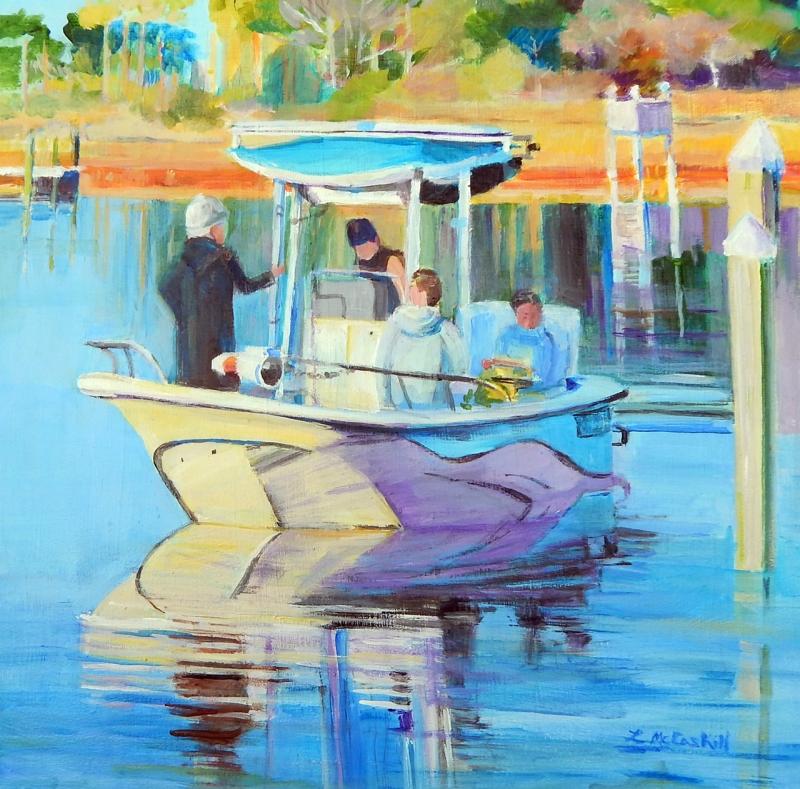 “We are blessed here in Delaware with a dominance of blue in the landscape,” said Lesley McCaskill, who painted “Enjoying the Waterway” for the show. “From the sky to all the waterways, cool, refreshing blue is here for us to enjoy through every season.”