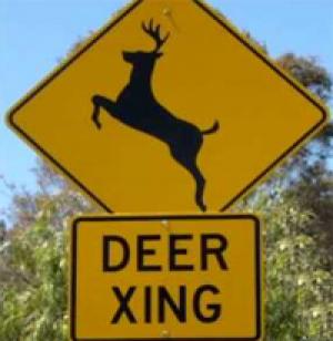• If there is a deer crossing the road ahead, slow down immediately and proceed with caution until past the crossing point. Deer usually travel in groups, so if one see one deer, there are likely to be others.