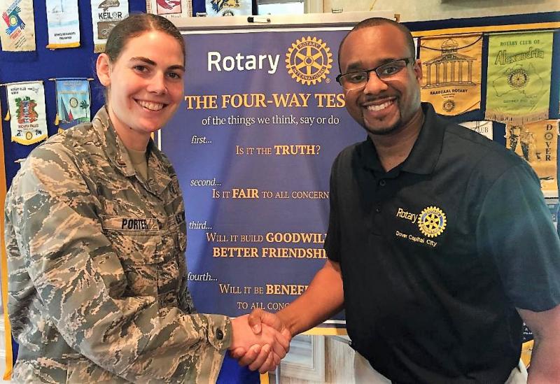 Air Force 2nd Lt. Cortney Porter addressed Dover Capital City Rotary Club members at its April 25 luncheon meeting. She spoke about the planned Thunder Over Dover Air Show and Open House slated for Sept. 13-15 with performances beginning at noon.