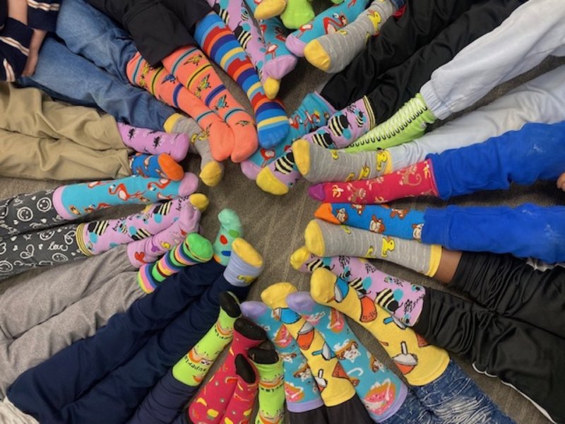 For Rock Your Socks activities, community groups ranging from elementary schools to medical practices wear brightly colored, mismatched socks to spark conversations about Down syndrome.