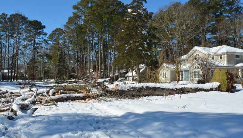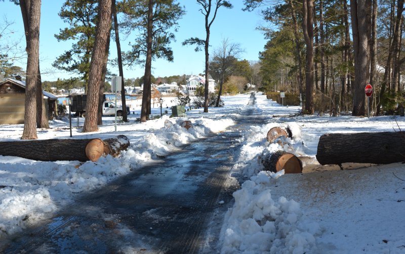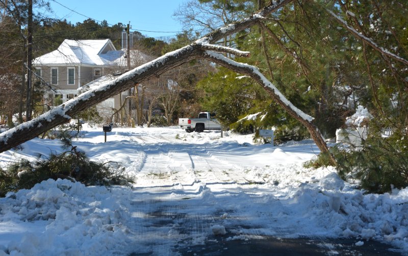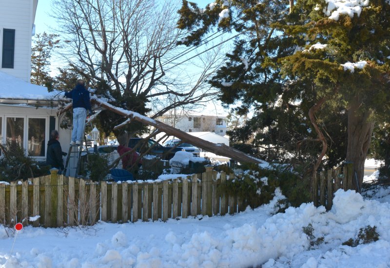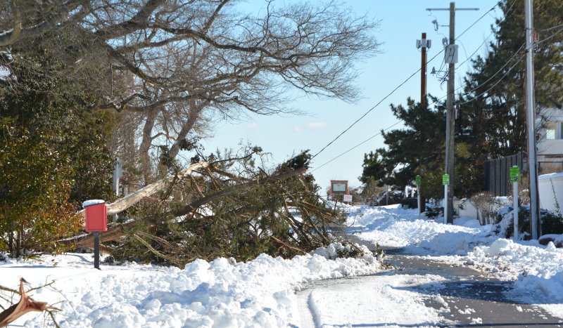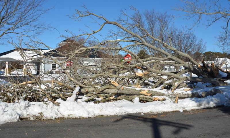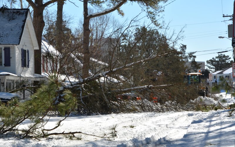 The snow has stopped falling, but the cleanup from the recent storm and the restoration of power to all is being hampered by fallen trees all over the Cape Region.