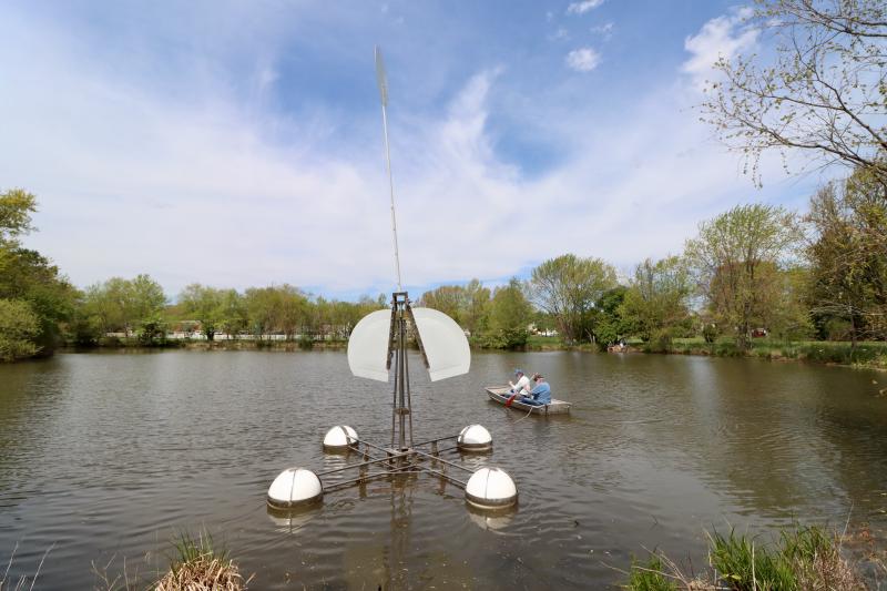 His wind-activated “M.T. Skirt No. 6,” for example, now floats in Blockhouse Pond at George H.P. Smith Park. Daniel said, “The sculpture flips in the wind, changes direction and flips into the wind again.”