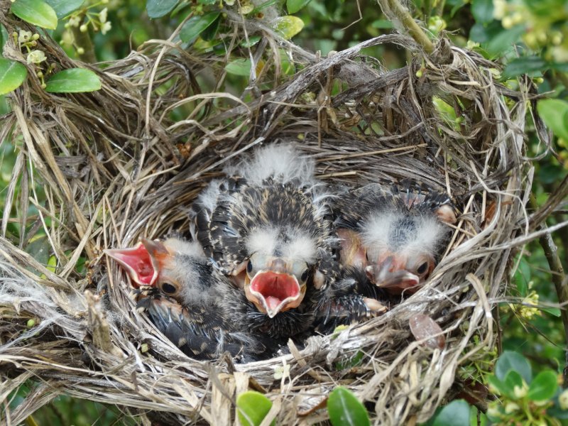 A trio of hungry baby robins are looking for mom to feed them in their nest near Milton in Peter Klotz’s photo.