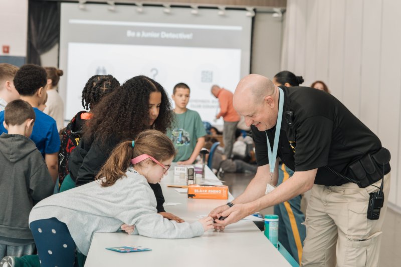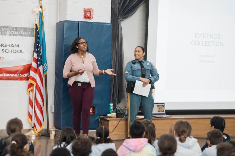 During the classroom presentations, Zambrano and Wideman introduced students to different types of evidence and explained the process detectives use to determine what evidence is needed to solve a case. Students learned how observations, details and careful analysis each play a critical role in investigations. These are all skills that directly connect to effective writing.