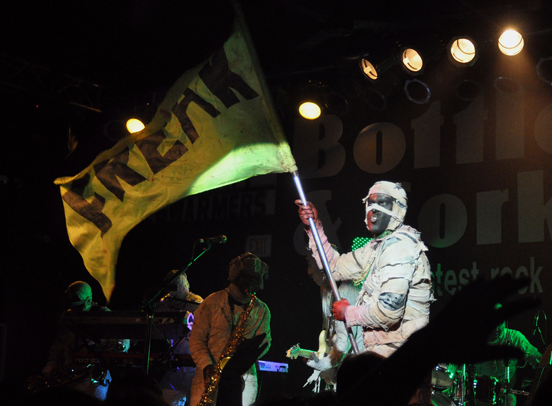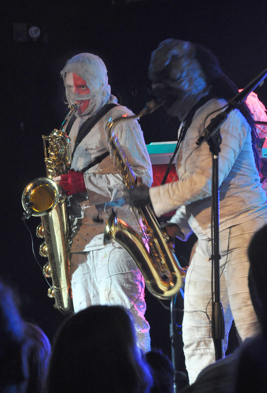 "Here Come The Mummies," an R&B and funk band, rocked the Bottle & Cork in Dewey Beach July 27 with its unique stage show. The band has created a following thanks to their off-the-wall act, with each member of the band is fully dressed in mummy garb. Appearances on nationally syndicated radio show, "The Bob and Tom Show," has only drawn the band more attention.
