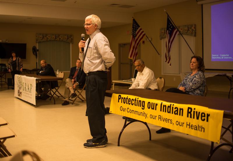 John Austin, a retired Environmental Protection Agency chemist, was the next panel member to speak, presenting information on nitrate levels in the water resulting from the misuse of planning and lack of structure related to large corporations in Sussex such as Allen Harim, Mountaire and Blessing Compost, which all show evidence of increased nitrate levels in surrounding wells. “You are the first line of defense,” he added before opening the floor for the next panel member.