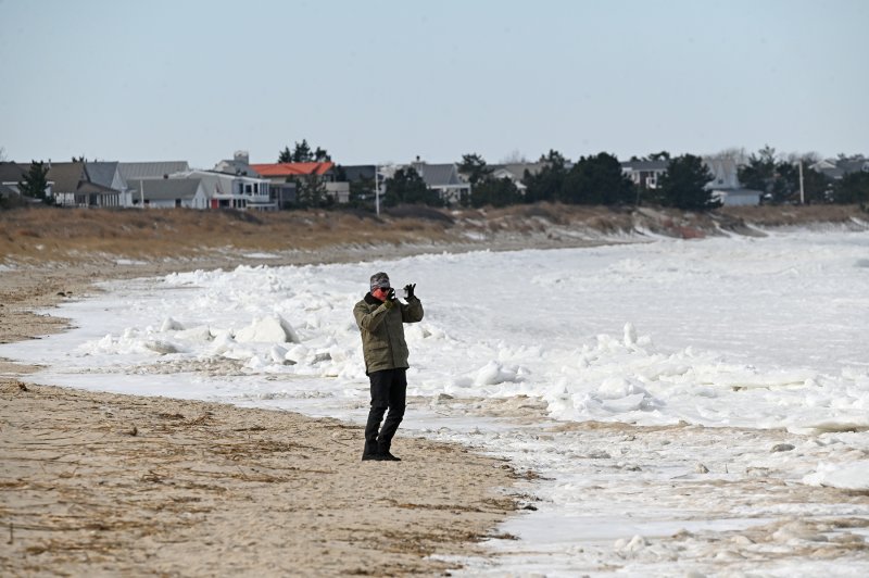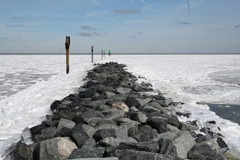 The bays, ponds, canals and anything else liquid is frozen. The icy Delaware Bay is attracting people to the beach, but without beach chairs and sunscreen.