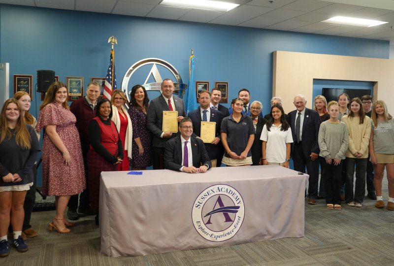 “These bills are inspired by two young men whose lives were tragically cut short because of online sexual exploitation,” Meyer said to an audience of students, faculty, stakeholders and lawmakers at Sussex Academy in Georgetown. “In the aftermath, their families turned their pain into purpose.”