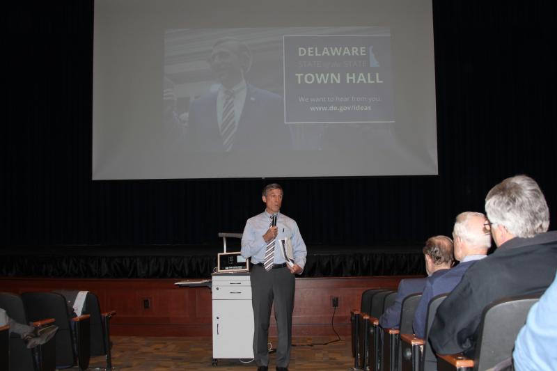 Gov. John Carney fielded questions on healthcare costs, property assessments and legalizing marijuana during a town hall meeting held April 3 at Cape High.