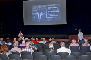 On the issue of property reassessments – last done in 1974 for Sussex County – Carney said a bill to reassess property was in the state Legislature when he was Secretary of Finance under then-Gov. Tom Carper, but the Senate leader refused to address the bill, and the legislation died. At the time, he said, a property reassessment would have resulted in 1/3 of properties getting a tax increase and the other 2/3 would stay the same or drop.