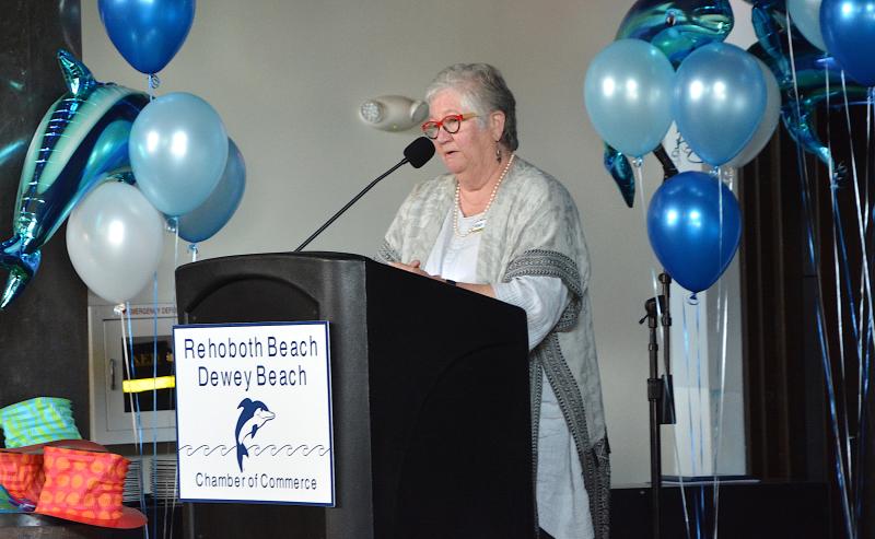 Mary Dickson, Bob Lore and Sue Lore were given the 2024 Cheryl Blackman Volunteer of the Year Award. Sue Lore spoke briefly on behalf of the other two. She credited the chamber employees who make the events happen every year and said the three of them have the best location during Sea Witch because it’s covered and near a bathroom.