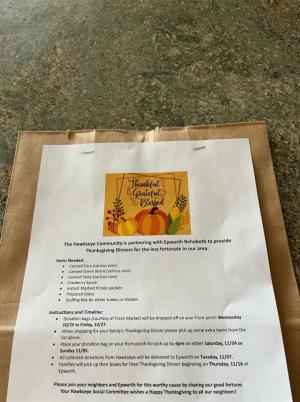 Hawkseye neighbors hold Thanksgiving food drive for Epworth pantry