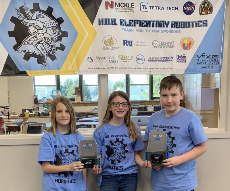 Fifth-graders Madison Lubiniecki, Mason Trench and Brian Lloyd will represent H.O.B. at the Vex IQ World Championship April 28-30 in Louisville, Ky., among teams from all 50 U.S. states and at least 15 other countries.