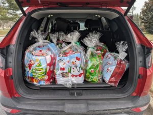 The gifts were all packaged Dec. 5 at First Unitarian Church of Wilmington, and loaded into the cars of the ILYA workers from the Delaware Division of Family Services who will deliver them to each young adult.