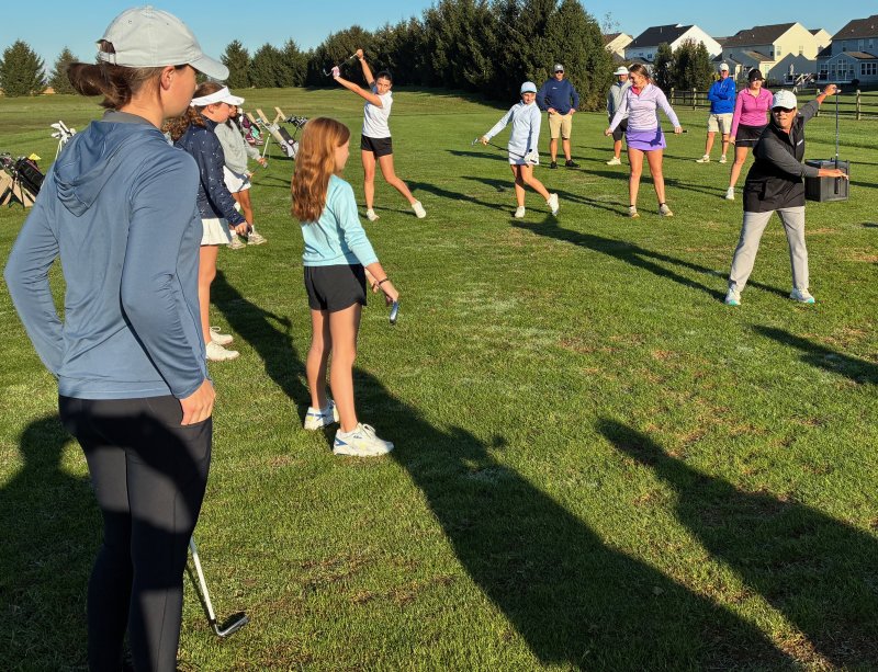 “It’s interesting,” she said. “Unlike the boys, the girls need a lot more hand holding and help. We want to make sure we get them comfortable. A lot of the girls are pretty new, don’t know what to do, don’t know what club to hit, how far they go, or anything. We’re trying to make them comfortable as they start with golf.”