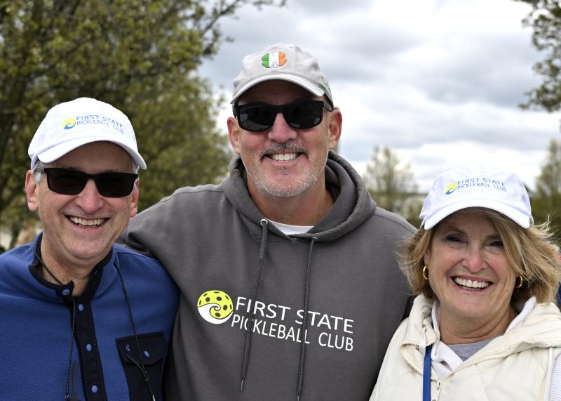 First State Pickleball Club members attending the event are Andy Staton, Karen Faber and Chuck Connolly, with Rina Pellegrini in back.