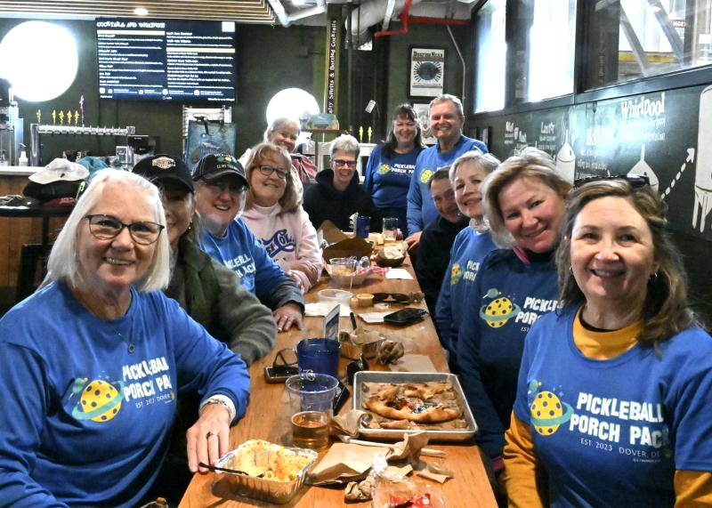Members of the Pickleball Porch Pack out of Dover attending the PickleBrawl event are (l-r) Sarah Strange, Tammy Stock, Tammy Morris, Dottie Starkey, Mary Vogel, Lisa Sanderson, Ann Abel, Bob Haynes, Bob Payne, Janie Warren, Laura Swiney and Vicki Dempfey.