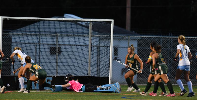 Indians goalie Jazmin Mayfield was credited with 21 saves, including a stop on a penalty stroke. Mayfield is nearing 300 saves for her career.