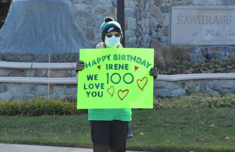 Nearly 40 cars, many with at least two people, participated in a drive-by birthday party for Irene Dash, who celebrated her 100th birthday Dec. 6.