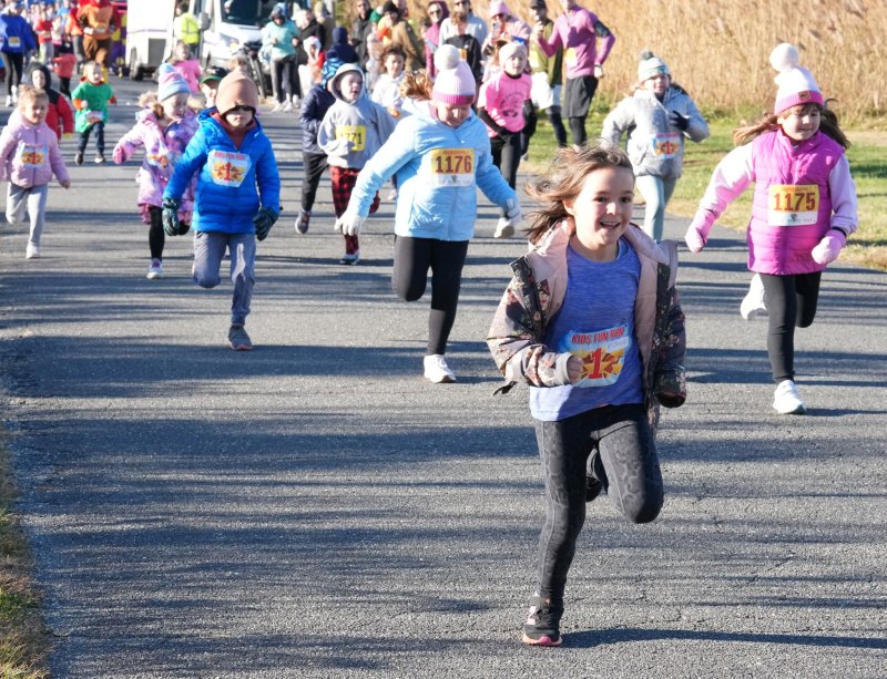The Irish Eyes family has been hosting a 5K event for more than 10 years and giving the proceeds to charity, while bringing families to Lewes on Thanksgiving Day. The morning kicked off with the Little Gobble dash for kids, as 40 youngsters raced an out and back 200 meters to the cheering crowd. Next up was the featured 5K run/walk event that took participants down Market to Cedar Street, turning around between Children’s Beach House and the Lewes Yacht Club for the out-and-back run.