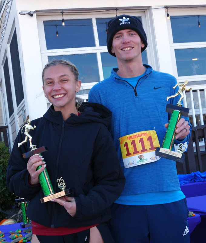 On the female side, it was Nicole Tirelli of Middletown, N.Y., racing across the line in 20:25 to win the overall title. Moo Galbus of Wilmington ran 20:52 for second. Local Trudy Dalton of Selbyville ran 21:24 to finish third and win the masters title, while Maren Dougherty of San Diego, Calif., ran 22:10 for fourth place.Young Elle Stretch of Lewes turned in a 22:55 to round out the top five.