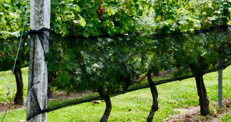 Each August, Nassau Valley Vineyards near Lewes declares war on birds who love to eat grapes, during a key growing month as harvest nears in September and October. After years of struggling with the birds, protective netting was placed on the vines. Even so, a number of bird-deterrent measures are still in place, including swirling inflatables and broadcast bird sounds to scare away the marauders.