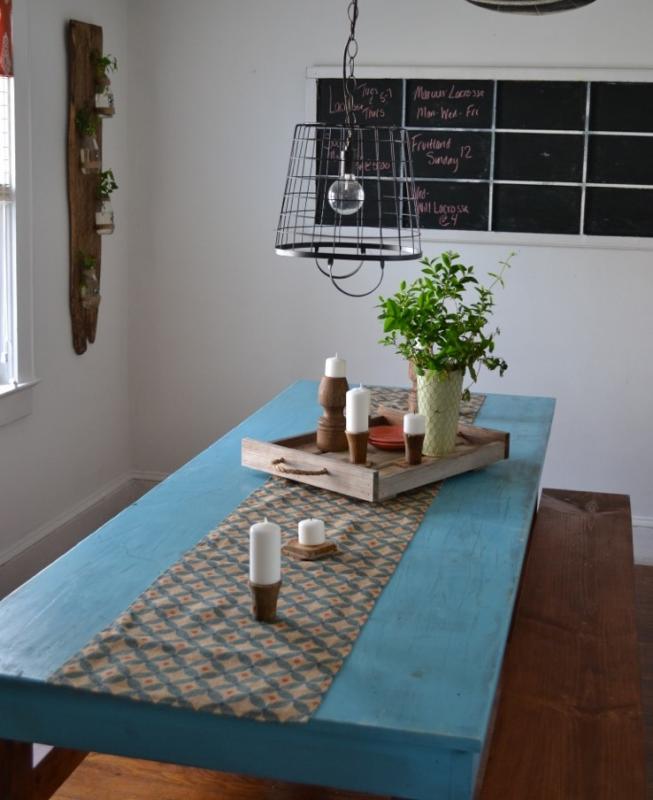 In a custom pole barn kitchen and bar on the outskirts of Milton, Bragg combined new and old materials, creating a contrast of colors and textures that would be difficult to find on the shelves of a hardware store. Old oak and poplar pallet boards work together with both new and reclaimed pine pieces to make a patchwork countertop that seems to fit together like a puzzle.