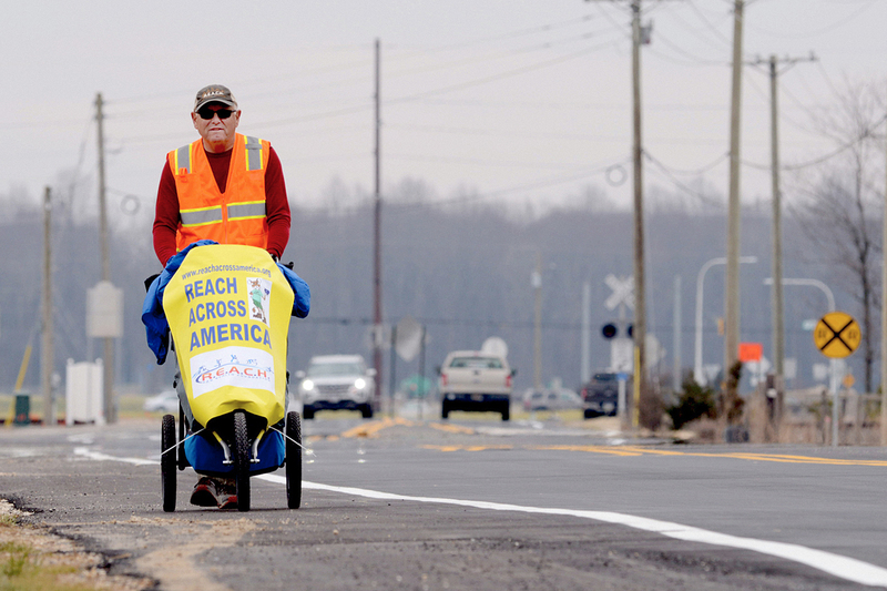 A California adventurer left Lewes Feb. 21 and is walking east-to-west across the United States in 2016 to connect his central coast county to the nation's historic trail system. Jim Ostdick, a retired high school science teacher, plans to walk more than 4,000 miles on the American Discovery Trail as a fundraiser to create a regional parkway in rural San Benito County, which is south of Silicon Valley and east of the Monterey Bay area.
