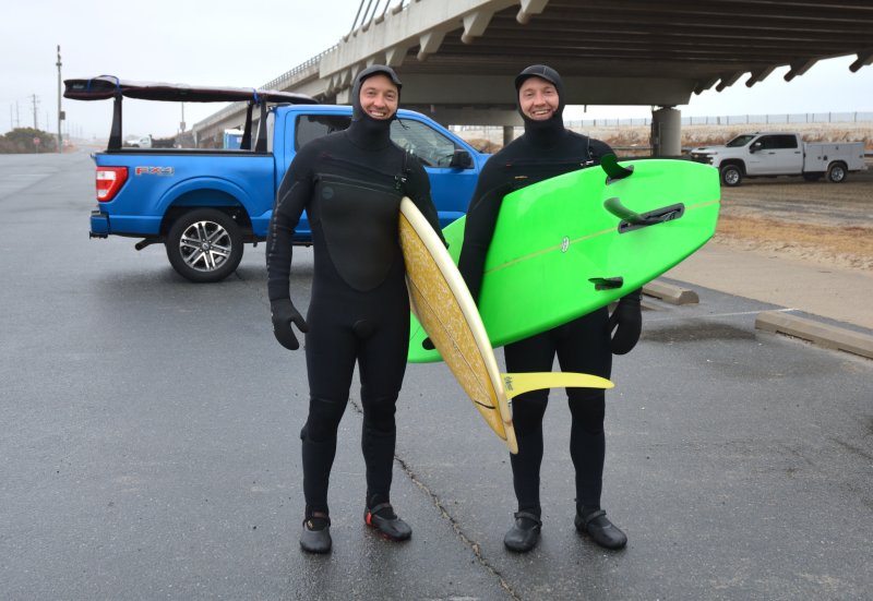 A few days later, I was down at the Indian River Inlet getting photos for a story when I came across Kyle and Scott Atwell, 40-year-old twins who grew up in Montgomery County, Md. They were in their cold-water wet suits, getting ready to head out. The only thing showing was their faces.