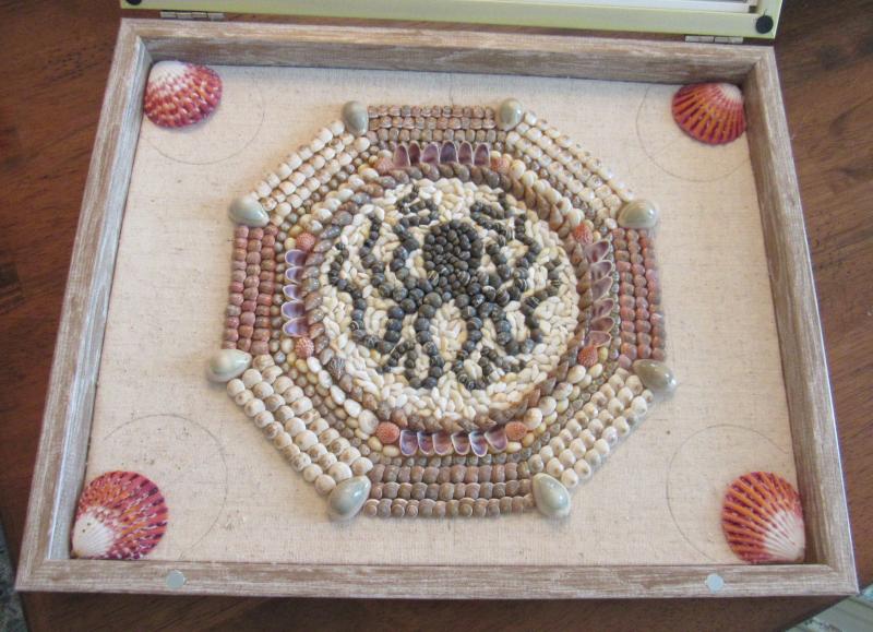 Kimberly remembered the sailor’s valentine in Rehoboth that had fascinated her as a child. She looked for it, but it was gone, and she could find no trace of its existence on Google. She decided to try creating one of her own.