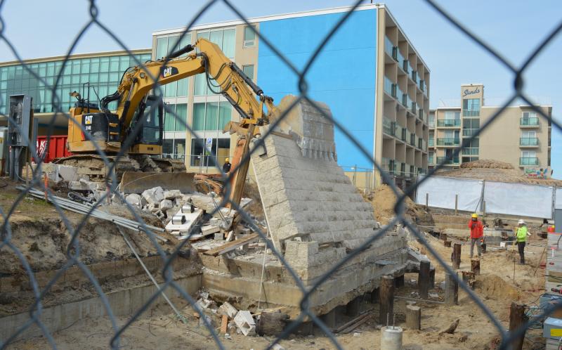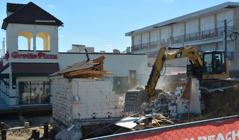 About three weeks after the ceremonial first swing of a sledgehammer and two weeks after actual demolition began, the old Rehoboth Beach Patrol building has been razed.
