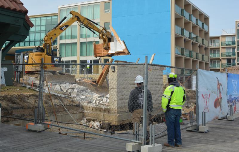 The final wall came down Feb. 16. Actual time spent demolishing the structure wasn’t much more than a couple days. The process happened over two weeks to fit in disconnecting all the utilities. The portion of the building housing the beach patrol headquarters was removed first, while the public restroom area remained because that’s where the structure’s electricity was hooked up.