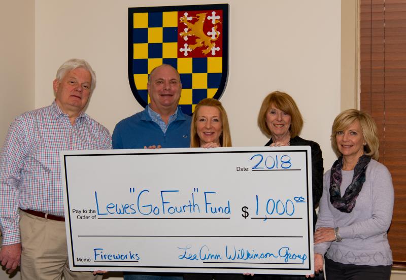 The Lee Ann Wilkinson Group at Berkshire Hathaway HomeServices Gallo Realty presented a donation to the Go Fourth fund committee members for the inaugural Lewes July 4 fireworks. The committee members very much appreciate all the donations from businesses, residents and visitors to fund the event.