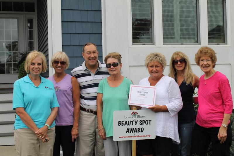 Lewes in Bloom announced it Beauty Spot in Lewes for August 2016 was awarded to Ellen and Kenny Schnabel of Kalmar Street at the Breakwater Community, Lewes. Their garden reflects a design that takes advantage of the residence's house and lot layout while minimizing grass due to allergies.