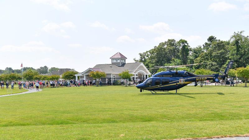 At its annual Safety Day June 10, Lewes Crossing celebrated the 100th anniversary of the Delaware State Police. On a perfect June day, residents watched a state police helicopter approach the field behind the community’s clubhouse and gently land. Also arriving were a K-9 unit, a trooper from the Motorcycle Unit and a trooper from the Community Engagement Unit.