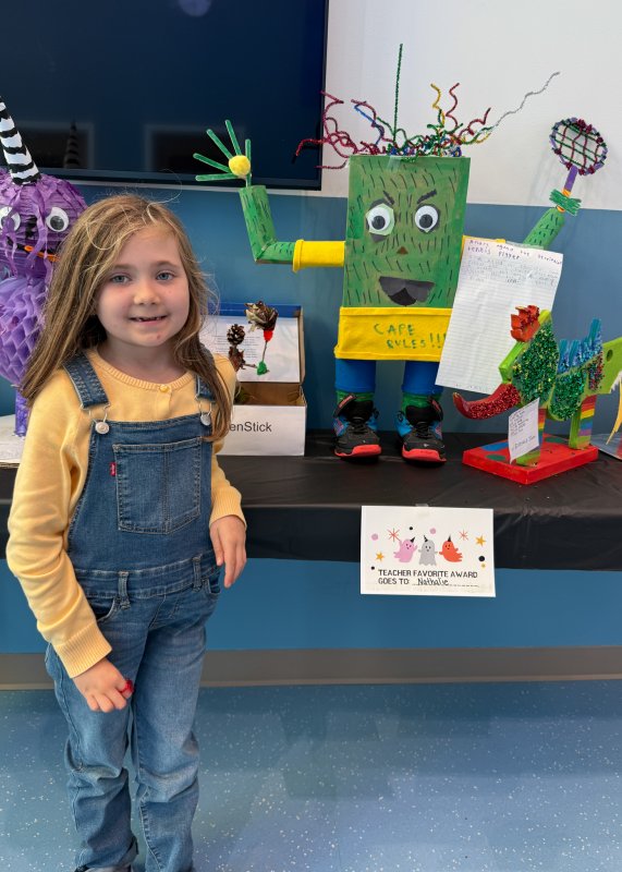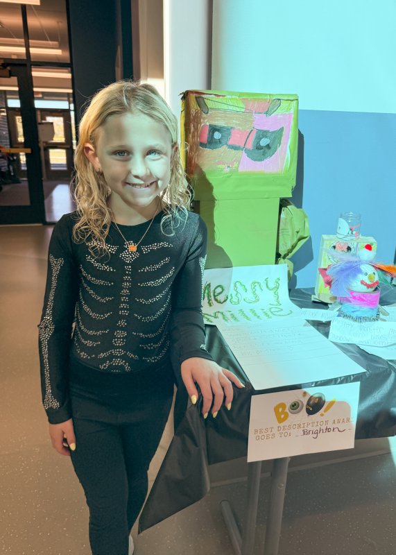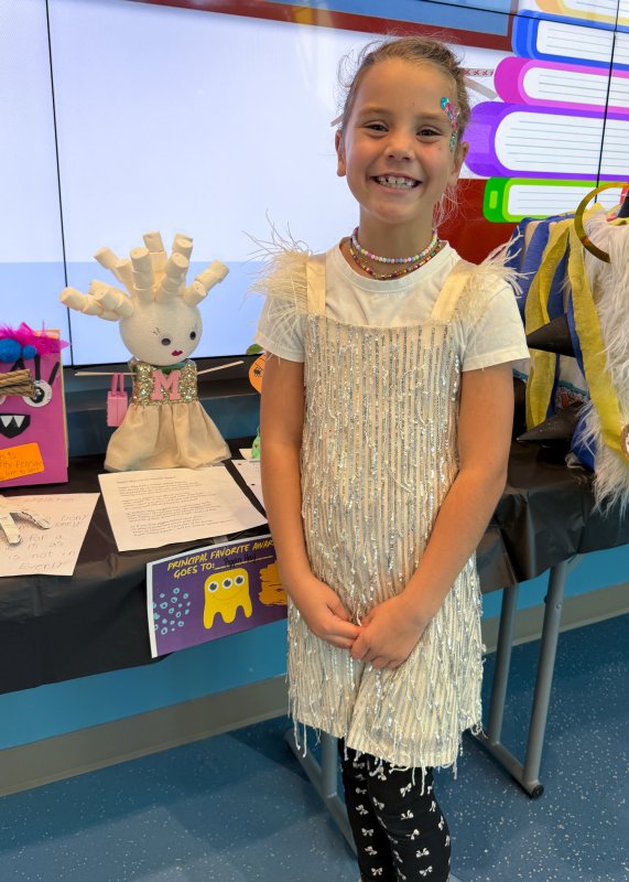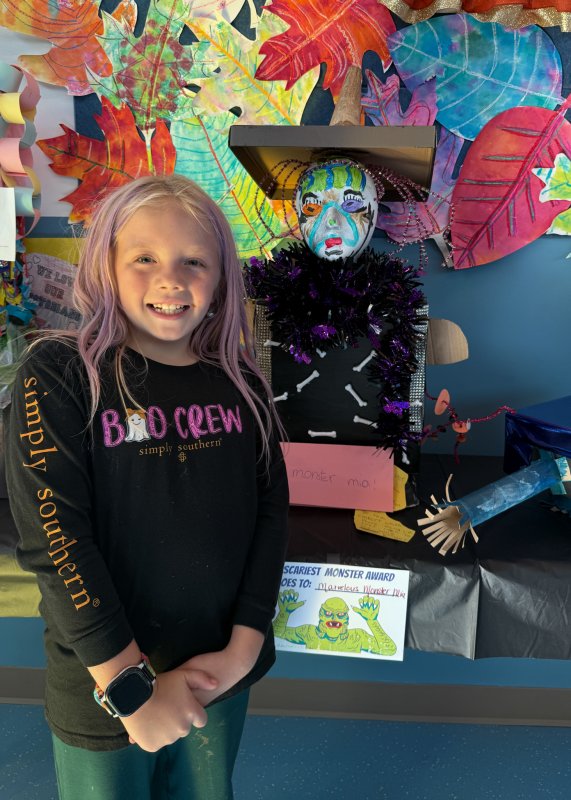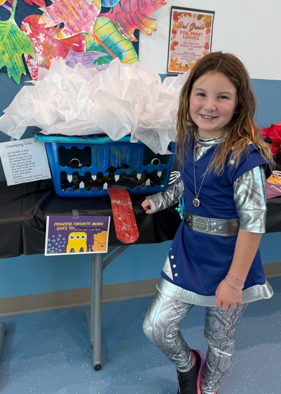 Teacher’s Favorite Award winners are Nathalie Roy, Shea Jones, Sophia Kollar, William Kuhfahl and Zariyah Shaikh. Principal’s Favorite Award recipients are Bella Nelson and Pippin Hay. Other award winners are Brighton Griffin - Best Description, Adrien Kluchnik - School Counselors Favorite, Andrew McManus - Most Creative, Reese Meiklejohn - Art Teacher’s Favorite, and Elise Tuske - Scariest Monster.